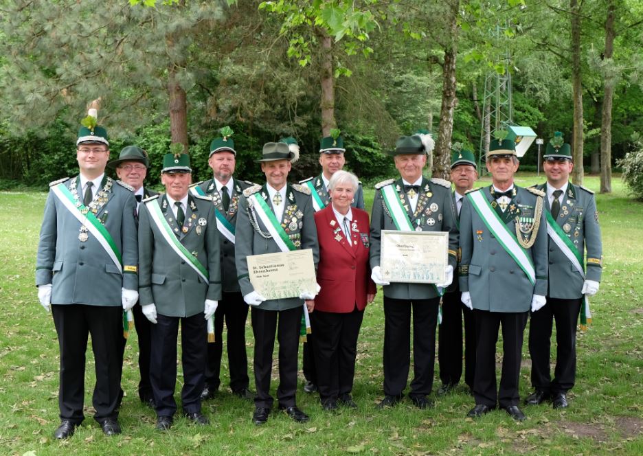 Bezirksbundesmeisters David Steffens das St. Sebastianus Ehrenkreuz verliehen.